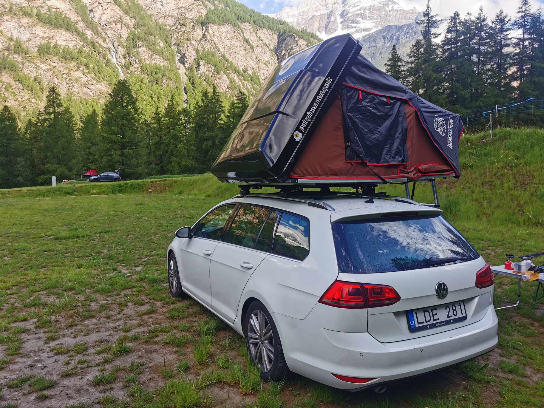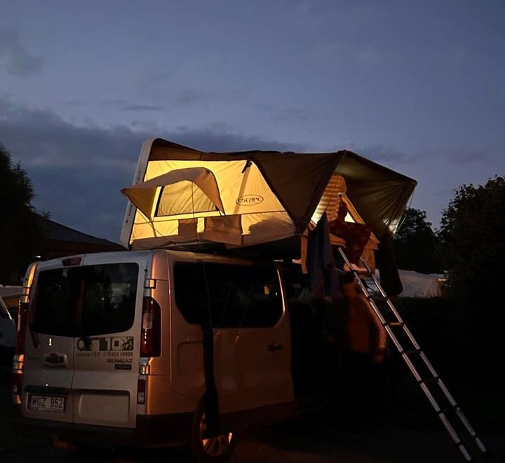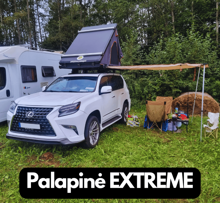 Erdvesnė stovyklavietė. Stogo palapinės užima mažiau vietos stovyklavietėje, palyginti su tradicinėmis palapinėmis.