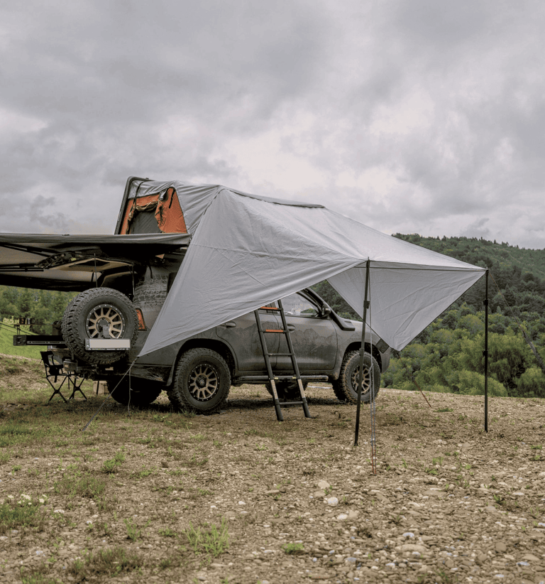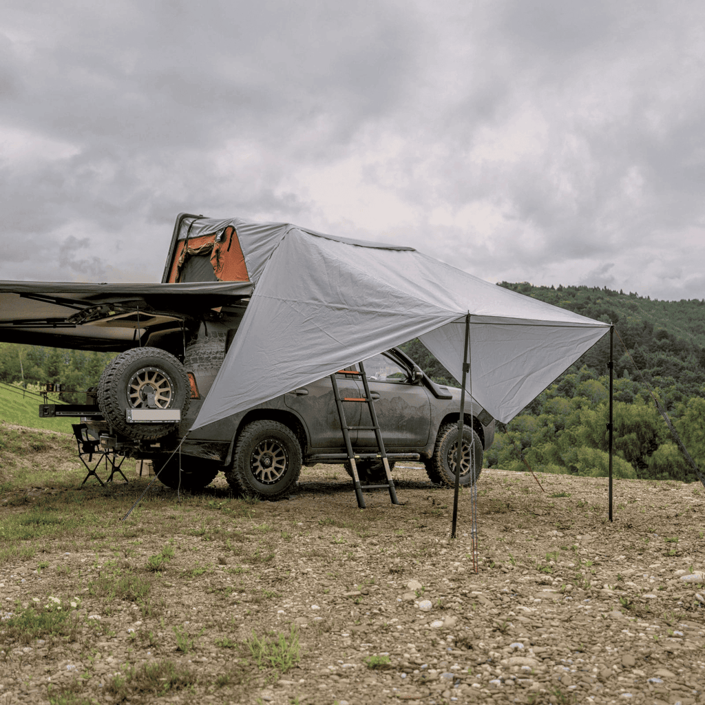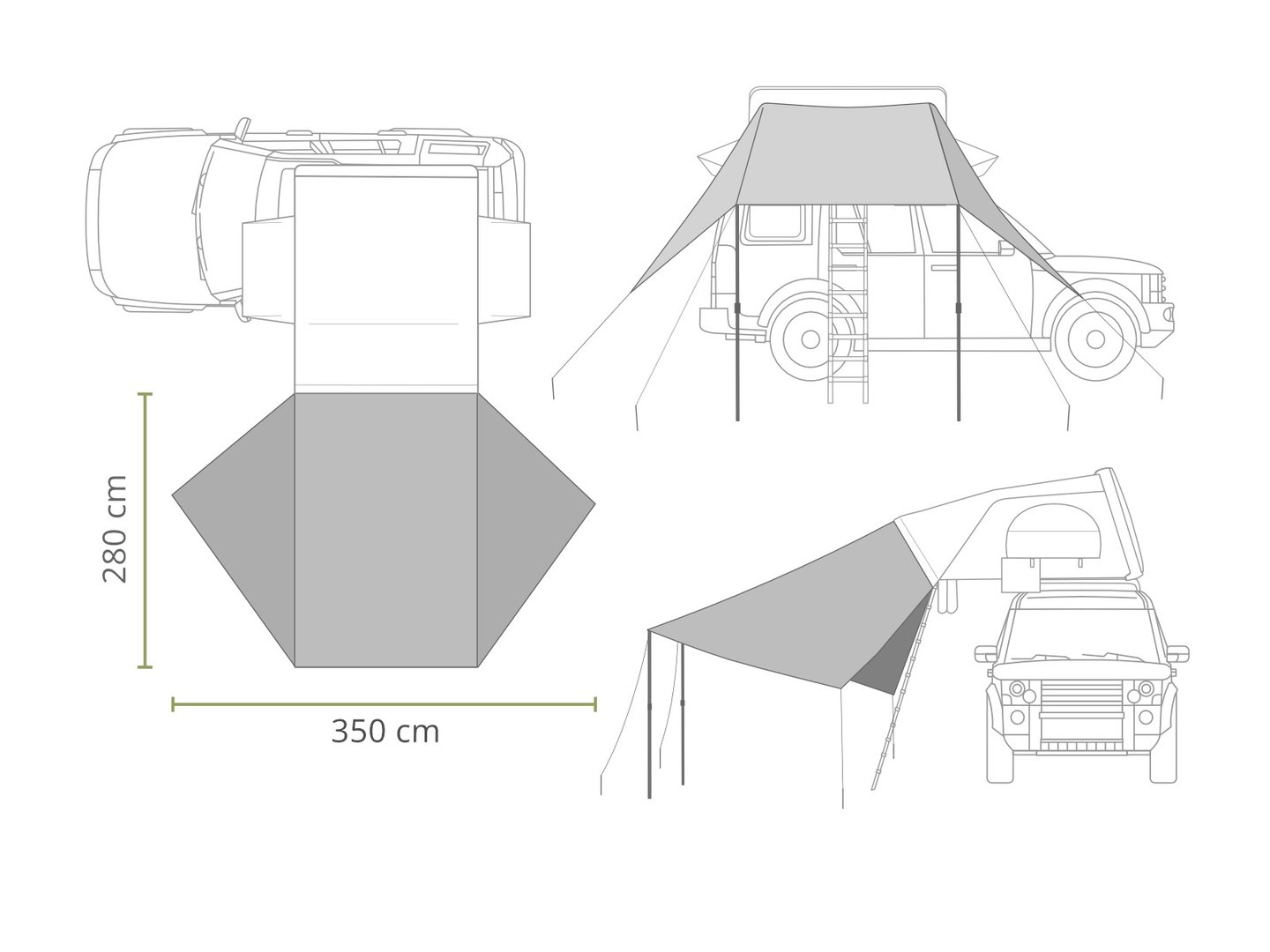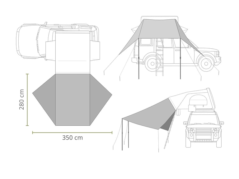 ⛺ 4-vietės palapinės stogelio išmatavimai 280 x 350 cm. Svoris 3.5 kg