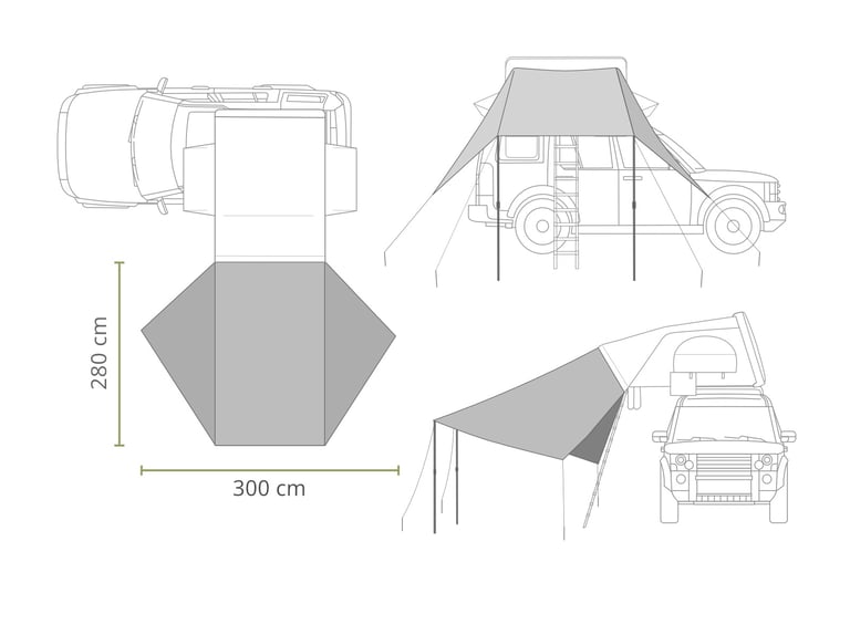 ⛺ 2-vietės palapinės stogelio išmatavimai -280 x 300 cm. Svoris 3 kg