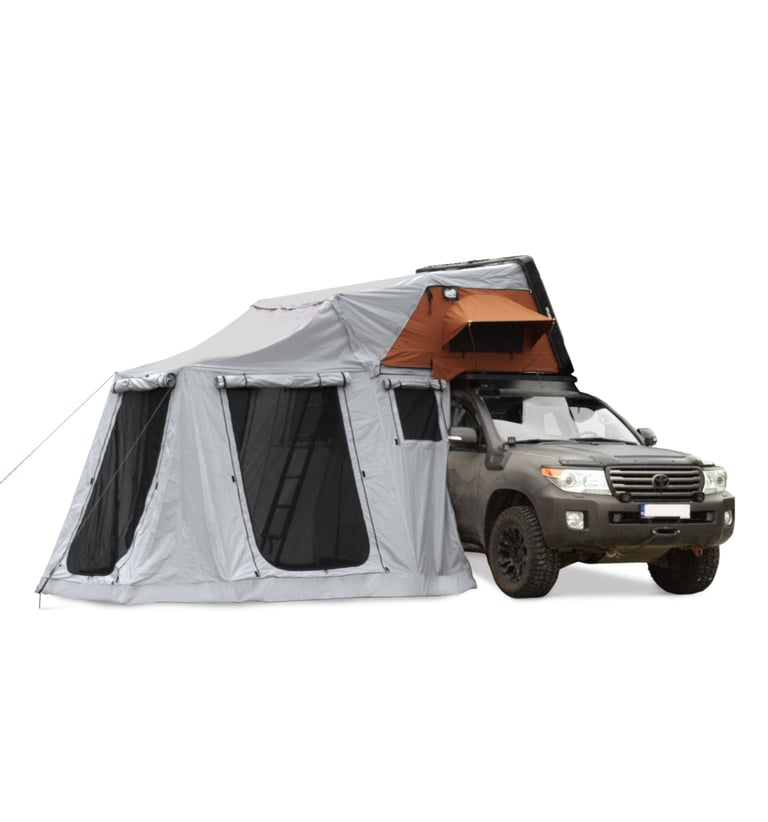 ⛺ Stogelis tvirtinamas prie palapinės užtrauktuku ir Velcro juostele.